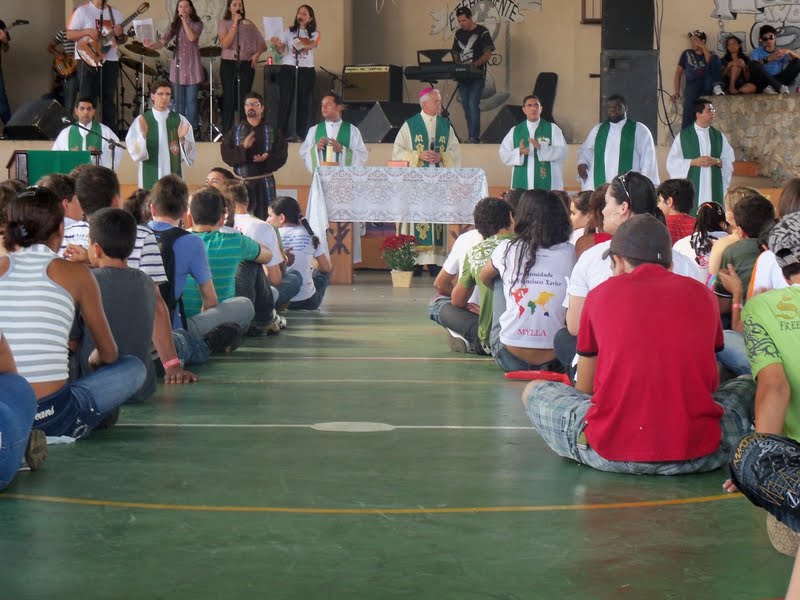 A missa celebrada por Dom José Luiz Majella Delgado C.Ss.R., Bispo da Diocese de Jataí, teve a cara da juventude. Foi o auge do DNJ. Pudera, dom Majella compreende bem os anseios e esperanças da nossa querida juventude, e toca com facilidade o coração das pessoas.